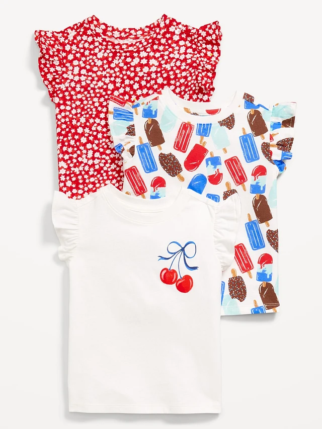 Short-Sleeve Ruffle-Trim T-Shirt 3-Pack for Toddler Girls
