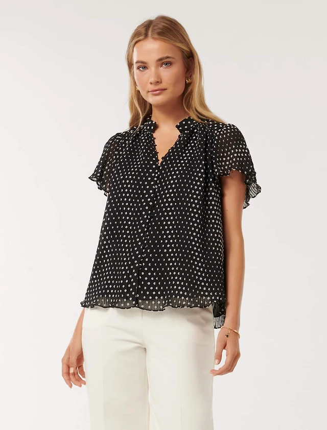 Flutter Sleeve Blouse & Tapered Leg Pants