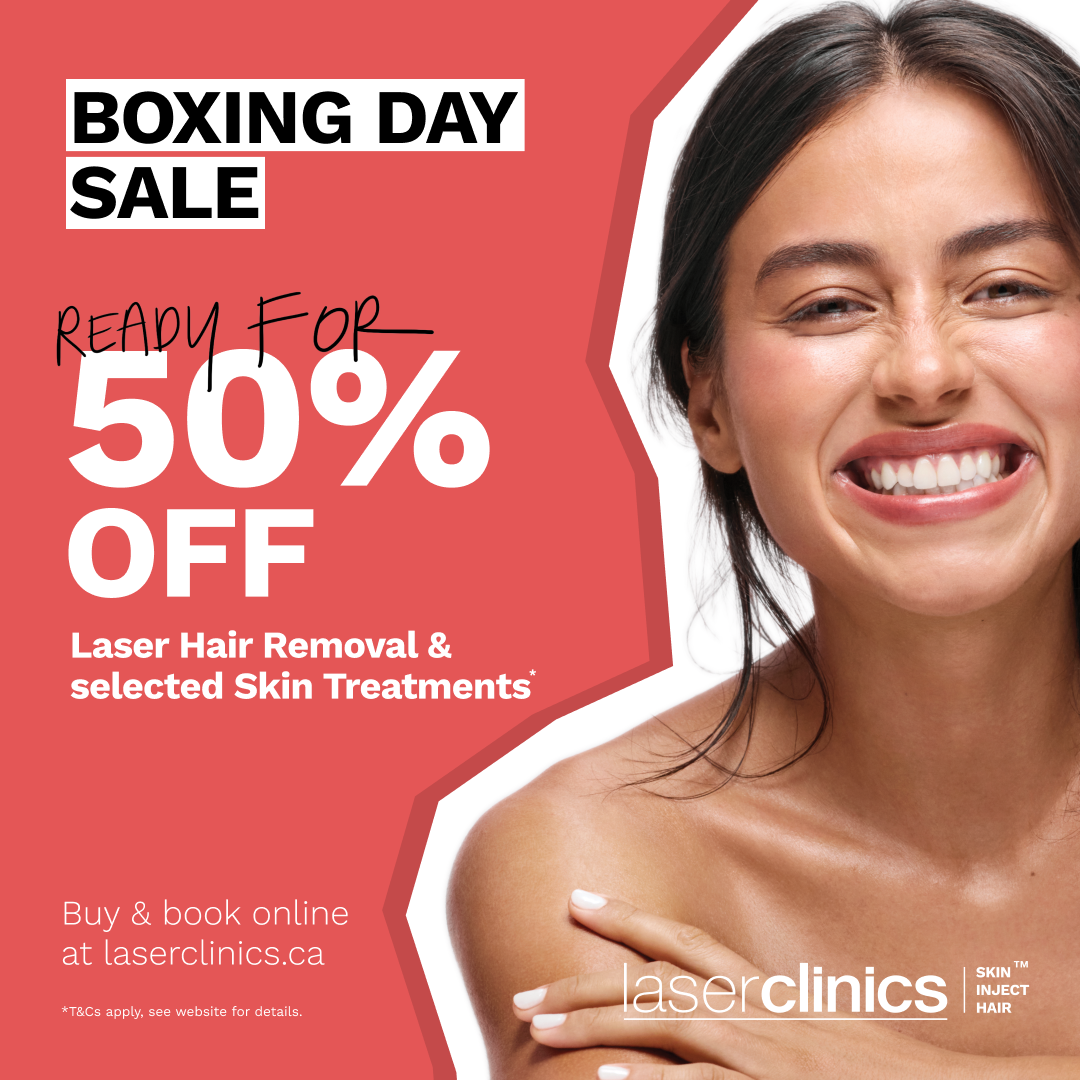 Mon, 22 Dec 2025 - Sun, 18 Jan 2026Enjoy our Boxing Day Sale 50% off Laser Hair Removal & selected Skin Treatments*Boxing Day Sale - 50% off*