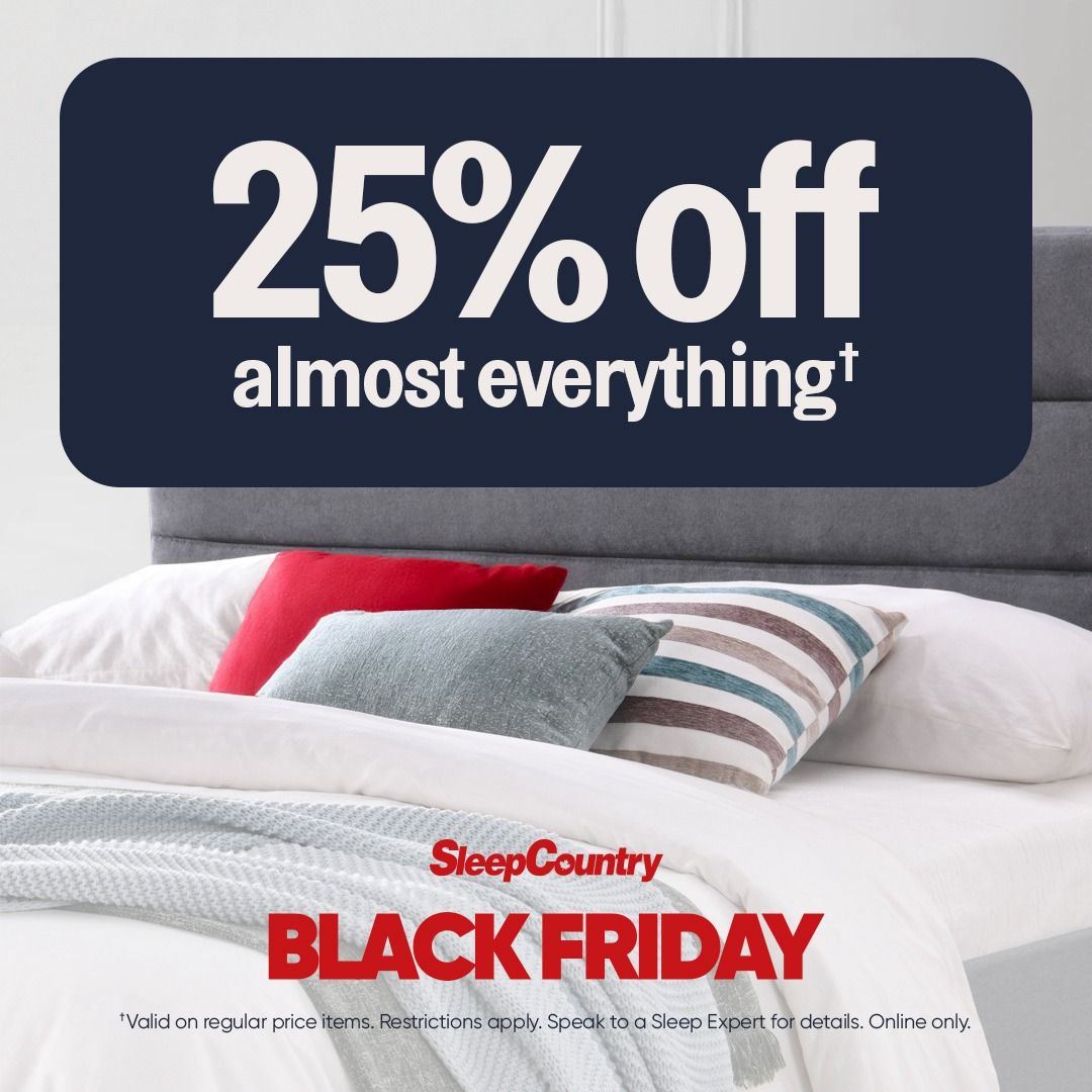 2025-11-03 - 2025-11-27Would you rather have deep discounts or deep sleep? Get both with 25% off almost everything at Sleep Country.